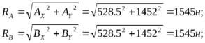 Подшипники пар А и В воспринимают внешнюю нагрузку FRa=RA=1545н; FRb=Rb=1545н;