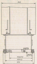 номинальный ток - 1000 А; номинальный ток отключения — 20 кА; механический ресурс—40000 циклов «ВО» с заменой камер через 20000 циклов. Для повышения уровня изоляции наружной поверхности ВДК она помещена в фарфоровую покрышку, залитую трансформаторным маслом. Габариты выключателя с приводом (ширина, глубина, высота) — 2,23 х 0,575 х 2,09 м. Масса выключателя с маслом - 880 кг.
