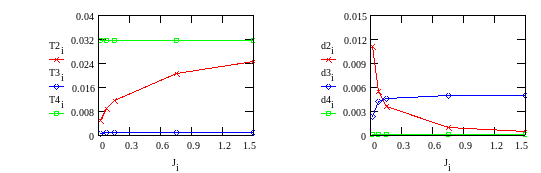 Из Табл.12...14 видно, что моменты инерции каждого из элементов модели сильно влияют только на одну из постоянных времени мало изменяя другие, поэтому в практических расчетах их можно считать независимыми.