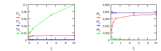 Варьируем следующие переменные: J3, J4, J5, C34, C45, D34, D45, при фиксированых значениях остальных параметров, равных базовым. Все единицы в СИ.