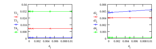 Из Табл.17,18 видно, что вариации коэффициента демпфирования в редукторе и креплении телекамеры не влияют на постоянные времени звеньев и, кроме того демпфирование в редукторе не влияет на коэффициенты демпфирования в колебательных звеньях, вызываемых нежестким креплением телекамеры, и, наоборот, изменение демпфирования в креплении телекамеры не влияет на коэффициент демпфирования в колебательном звене “от редуктора”.