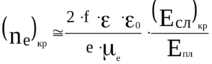 Наиболее часто цитируемое достоинство газового лазера с поперечным ВЧ-возбуждением заключается в резком снижении (в 10100 раз) питающего напряжения. Но эта положительная черта не является следствием применения ВЧЕР, а возникает благодаря малой величине межэлектродного зазора d. Очевидно, что и в разрядах постоянного тока при малых d напряжение на электродах будет невелико. Специфика ВЧ-возбуждения заключается в том, что в условиях поперечного возбуждения разряда, т.е. при небольших напряжениях на электродах, малый зазор можно заполнить активной средой СО2-лазера с высоким КПД. Другое преимущество связано с возможностью управления параметрами плазмы, особенно примыкающей непосредственно к приэлектродным слоям. В частности путём изменения частоты приложенного напряжения f можно изменять концентрацию электронов ne в плазме слаботочного разряда при прочих одинаковых условиях. Это следует из зависимости минимальной (нормальной) плотности разрядного тока слаботочного ВЧЕ-разряда от частоты. Предельное значения плотности разрядного тока в слаботочном ВЧЕР jкр, а значит и максимальную величину электронной концентрации в плазме (ne) можно определить из условия пробоя ёмкостных приэлектродных слоёв с учётом вторично-эмиссионных процессов на электродах: jкр=e*(ne)кр*e*Eпл2***0*(Есл)кр, где e, e – заряд и проводимость электронов в плазме, (Есл)крUсл/dсл – напряженность в приэлектродном слое, при котором происходит его пробой, dсл – его эффективная толщина, - относительная диэлектрическая проницаемость слоёв. Отсюда