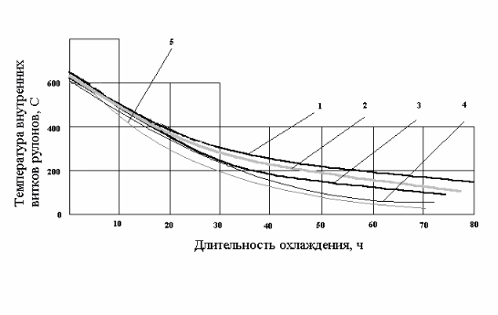 Полученные экспериментальным путем данные указывают на существенное возрастание эффективности этого метода при понижении конечной температуры охлаждения рулонов под муфелем. Поэтому его использование особенно целесообразно для рулонов качественного металла и жести, когда сокращение времени охлаждения достигает 40-45 %, что соответствует приросту производительности на 25-32 %.