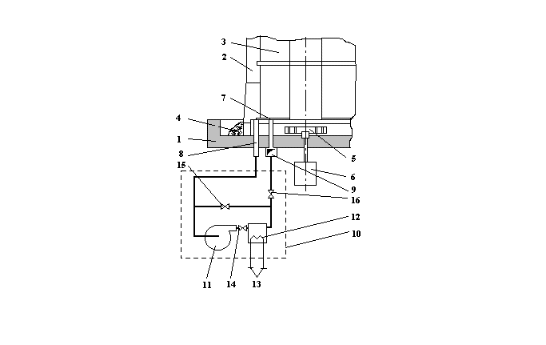 На рис.1 показана схема ускоренного охлаждения рулонов. Стенд 1, на котором под муфелем 2 находятся рулоны 3, снабжен каналами 8 и 9 для отсоса и подачи защитного газа в подмуфельное пространство. К этим каналам подсоединяются модули охлаждения 10. Каждый модуль 10 включает в себя циркуляционный вентилятор 11, газоводяной холодильник 12 с патрубками для подвода и отвода воды 13, регулировочный шибер 14, байпасный шибер 15 и отсечной шибер 16, служащие для регулирования газодинамического режима работы устройства /3/.