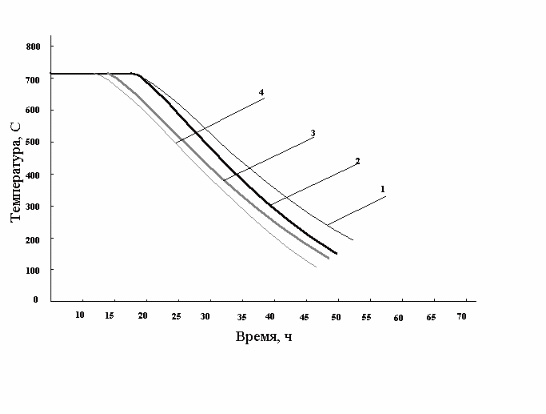 Характеристика работы печей при естественном охлаждении рулонов в зависимости