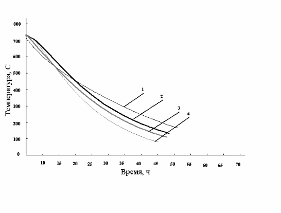 | Характеристика работы печей | Конечная температура охлаждения по стендовой термопаре, 0С | |||||
