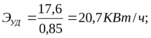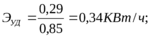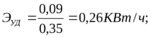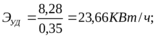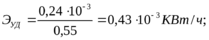 Расход электроэнергии в смену, в сутки и в год устанавливают умножением соответствующего количества рабочих часов в смену, сутки, год. Удельный расход электроэнергии подсчитывается по формуле: