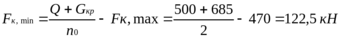 F1к, max = 470 кН; F2к, max = 0; Gкр = 685 кН; Gm = 180 кН; n0 = 2; В2 = 6760 мм; к = 5250 мм; fк = 1,1; fg = 1,05; к = 0,85; gпб = 4,5 кН/м.