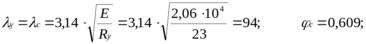 о таб. СНіПа в залежності від умовної гнучкості x і приведеного відносного ексцентриситету mef, визначаємо коефіцієнти зниження розрахункового опору при позацентровому стиску: l = 0,158