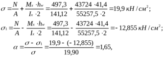 Міцність стикового шва (шов 1) перевіряємо по нормальним напруженням в крайніх точках надкранової частини колони по першій комбінації зусиль