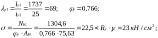 Виконуємо попередній підбір перерізу гілок колони. Для підкранової гілки колони приймаємо = 0,814; ( = 60), звідки необхідна площа перерізу