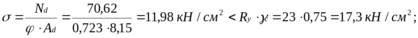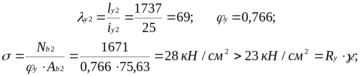 риймаємо 70x6 для якого Ad = 8,15 см2; imin = 2,15 см;
