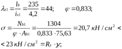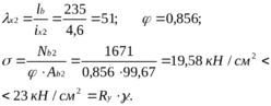 Матеріал колони – сталь С235; Ry = 23 кН/см2 (для товщин від 2 до 20 мм)