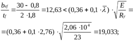 Прийнявши товщину полиць tf = 1,6 см; визначаємо фактичне відношення