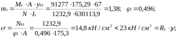 = -912,77 кНм; N = 1232,9 кН;