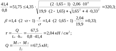 h/t = 568/12 = 47,3, що менше граничного, звідки випливає, що місцева стійкість стінки з t = 1,2 см забезпечена.