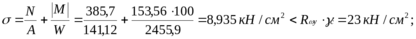 1) M = 153,56 кНм; N = -385,7 кН;
