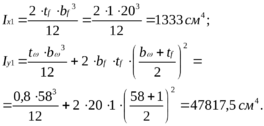 від’ємної площі полиць, і з огляду на те, що площа зовнішньої гілки дорівнює приблизно площі внутрішньої гілки, то зовнішню гілку приймаємо у вигляді також двутавра. Уточнюємо положення центру ваги перерізу нижньої частини колони: