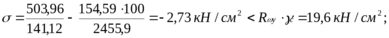 Для перевірки місцевої стійкості стінки при втраті стійкості із площини дії моменту визначаємо стискаючі напруження на межі стінки і полиці, і протилежному краю стінки