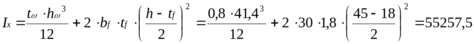 висота стінки: h = h2 – 2tf = 45 – 21,8 = 41,4 см; (попереднє значення товщини полиць).