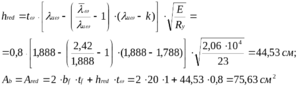 Так як місцева стійкість стінки не буде забезпечуватися, частина стінки буде виключена з роботи, а загальна площа буде зменшена на величину (h - hred)t