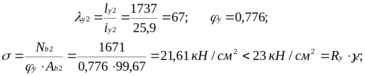 Перевіряємо стійкість гілок колон з площини рами