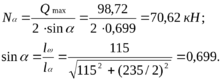 N1-1 = –497,3 кН; M1-1 = –437,24 кНм; Q = 67,5 кН; M2-2 = –84,34 кНм.