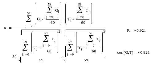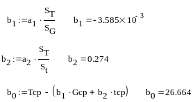 T(G,t) = 26,664 – 0,0036·G + 0,274·t