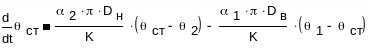 Уравнение динамики: зависимость выходной температуры нагреваемой нефти Θ2 от температуры греющей нефти Θ1 и температуры стенок трубки Θст.