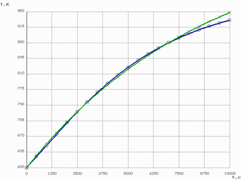 . Задаваясь давлением в аппарате, находим температуру кипения. Время прогрева получим, интегрируя приведенную выше систему до момента, когда температура сравняется с температурой кипения магния при заданном давлении в аппарате.