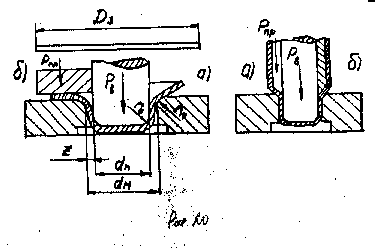 rn=0,7rm. Сопряжение дна со стенкой без радиуса можно получить путем калибровки или при штамповке весьма толстых заготовок с D3/S>20 , m>0,7.