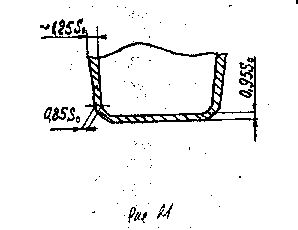 При вытяжке вследствие анизотропии материала открытый торец детали получается по высоте не одинаковым , а наружный диаметр фланца не круглым . Поэтому необходим припуск для обрезки. Толщина детали по высоте также не одинакова у верхнего торца от 1 до 1,3 толщины у дна - 0,85So , толщина дна уменьшается до 0,95So (рис.21)