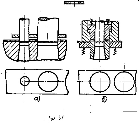 4. Расстояние от края отверстия до линии сопряжения полочки с радаусом должано быть не менее двух толщин (рис.19а). При меньшем расстоянии пробивку отверстия делают после гибки или предусматривают на перегибе отверстие (рис.19а) для предупреждения