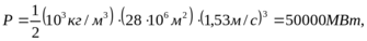 где р – плотность воды, g – ускорение силы тяжести, S – площадь приливного бассейна, R – разность уровней при приливе.