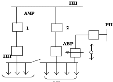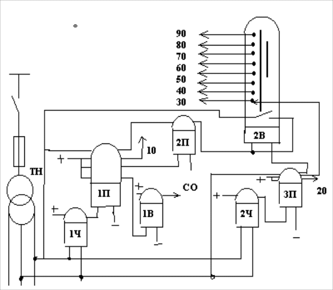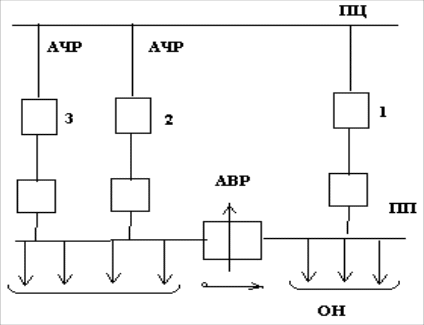 Рис . Схема многоступенчатого регулирования напряжения трансформаторов: