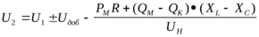 Анализ средств регулирования напряжения удобнее всего провести из рассмотрения общей формулы напряжения у электроприемников U2 в зависимости от напряжения генератора U1, добавочного напряжения Uдоб , создаваемого регулирующими устройствами, и потери напряжения, обусловленной активной нагрузкой PM , реактивной QM, активным сопротивлением сети R и реактивным XL.