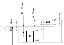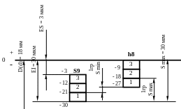 Рис.1.6. Схема полей допусков посадки 54 S9/m8