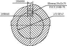 Рис. 4.2. Эскиз шпоночного соединения и его деталей.