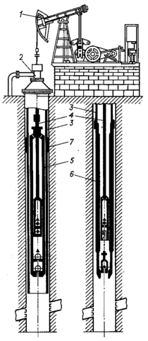 5 – вставной скважинный насос; 6 – невставной скважинный насос; 7 - опора