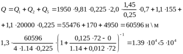 - условный коэффициент трения вращающихся буровых штанг о грунт, смоченный буровым раствором рассчитывается по формуле: