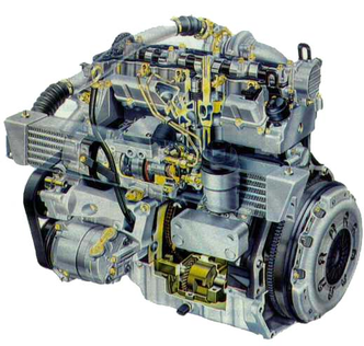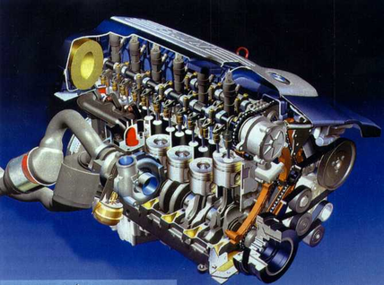 Рядный шестицилиндровый дизель БМВ (Евро III) c четырёхклапанной схемой газораспределения, неразделённой камерой сгорания, системой впрыска «коммон рейл», роликовыми толкателями, регулируемым турбокомпрессором и промежуточным охлаждением воздуха (слева).