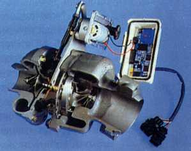Регулируемый турбокомпрессор двигателя БМВ с электрическим управлением (справа).