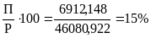 П = 52993,14 - 46080,992 = 6912,148 млн.руб