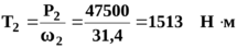 Крутящий момент на ведомом колесе T2 = 1513.
