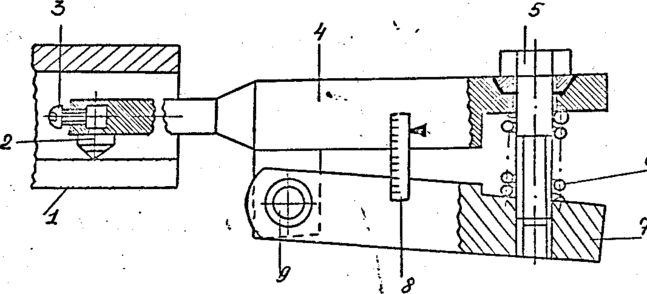 5 - алмазные наконечники, 6 - регулировочная коническая гайка,