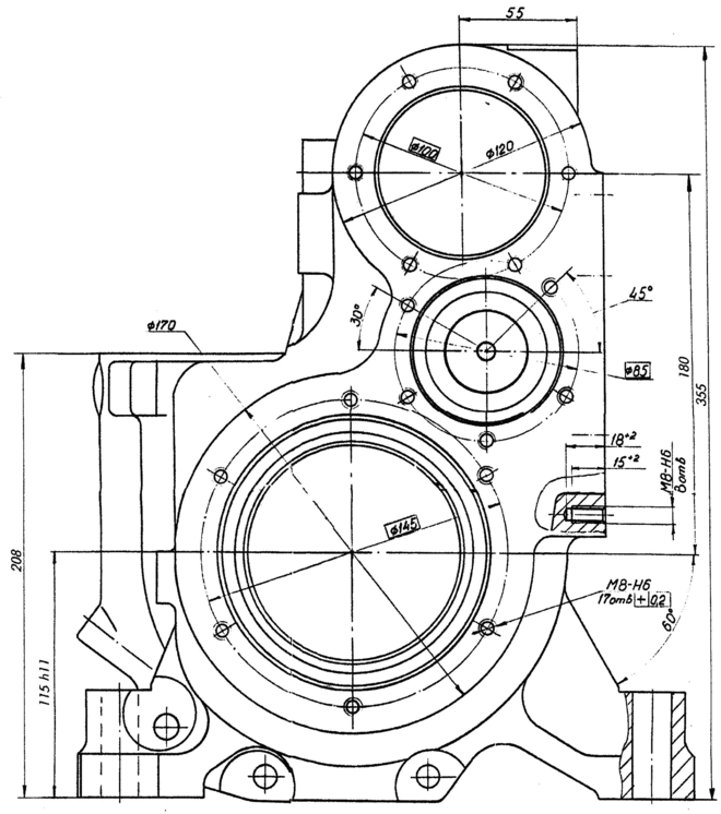 На эскизе (рис. 3.3.1 ) представлена деталь "картер" с годовым объемом выпуска Nг = 7200 шт. и массой детали - 6 кг.