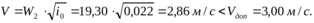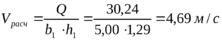 Определяем среднюю в сечении скорость по формуле IV.18 [5] и сравниваем с максимально допустимой скоростью для заданного типа укрепления, равной Vдоп = 3,00 м/с (см. приложение 22 [5]).