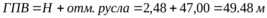 Горизонт подпертых вод (ГПВ) у малого моста можно найти как сумму напора воды перед мостом и отметки русла лотка. Тогда значение ГПВ будет равно: