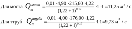 Qp=6,914=27,64 м3/сc=6,954=27,80 м3/с – условие по пропускной способности выполняется.