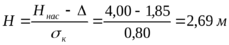 Hнас – высота насыпи у трубы, равная 4,00 и определяемая по продольному профилю, при условии, что она должна быть больше или равна минимальной высоте насыпи Hmin, определяемой в п. 3.4;